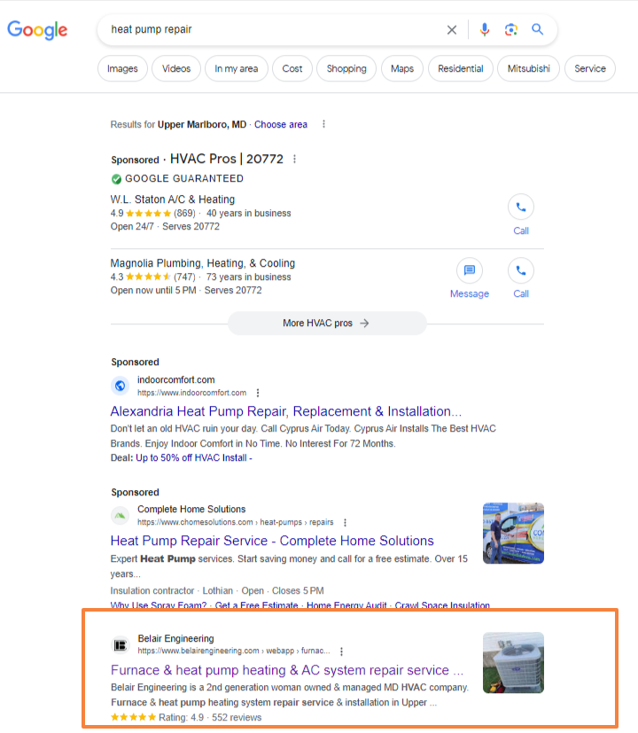 When your customer visits a Nearby Now page, they see work you’ve done in their neighborhood with people like them. They also see reviews for the kind of service they’re looking for. This helps engender trust.